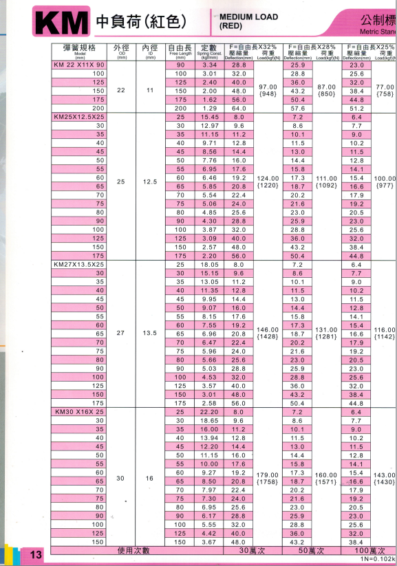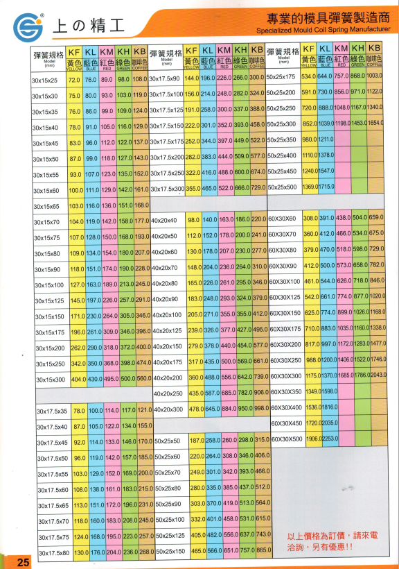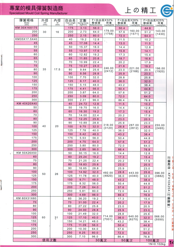 上精工模具彈簧規(guī)格書(產(chǎn)品大全)